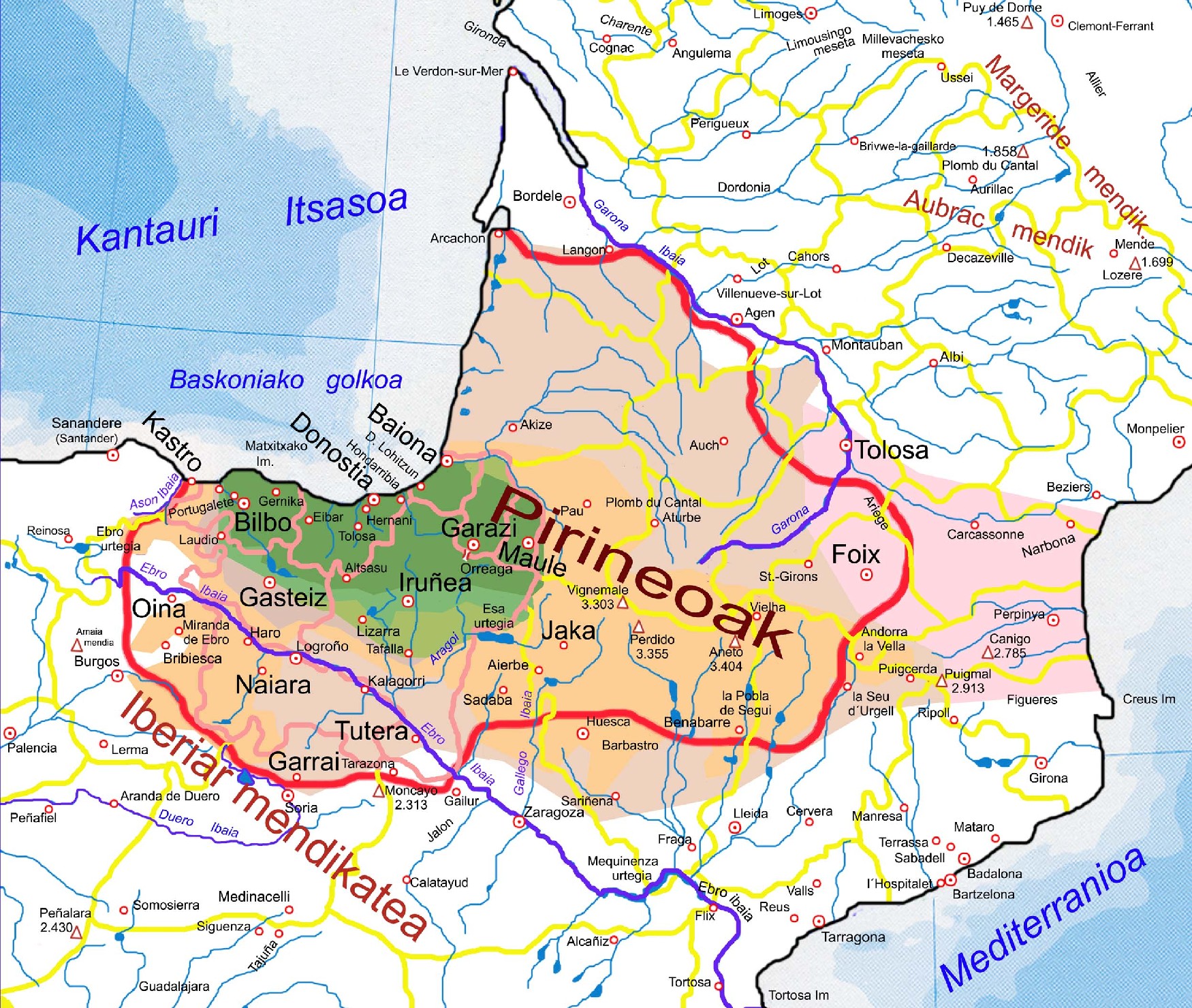 En 526, la « Waskonia » (Baskonia ibérienne) et La « Guasconia » (Baskonia continentale / Gascogne) partagent une culture, une langue basque et des mœurs communes.