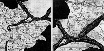 Représentation de l’isthme pyrénéen, dans la cosmographie de Ptolémée. Le Codex du XVVe siècle.