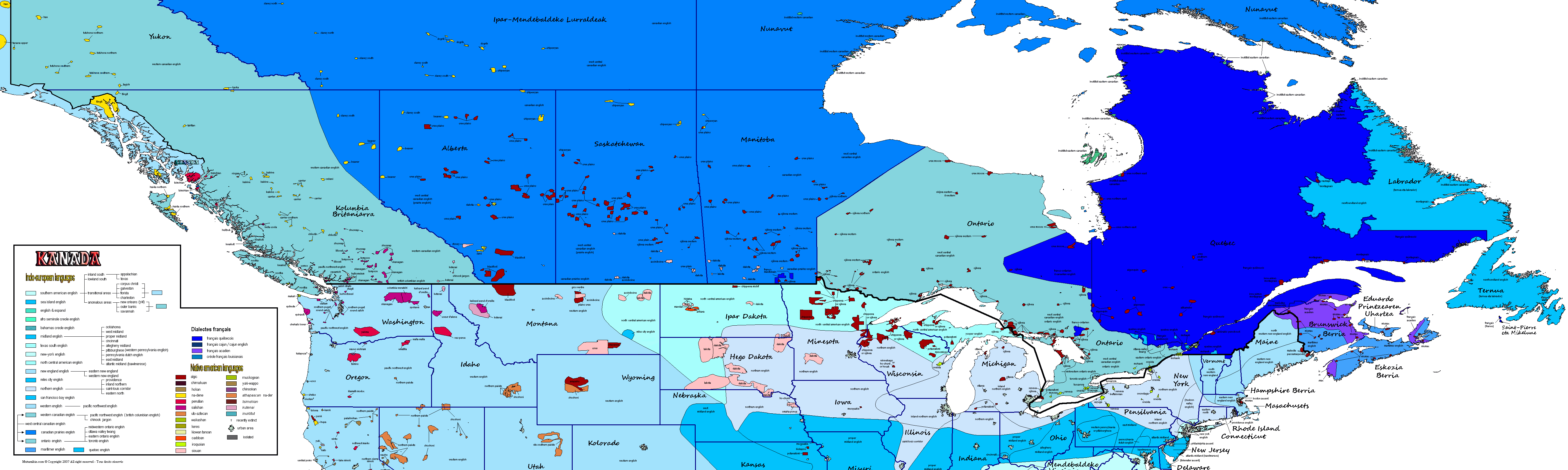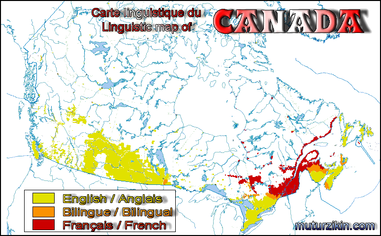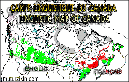 LANGUAGE MAPS OF THE U.S.A & CANADA : Linguistic map of Canada DISTRIBUTION LINGUISTIQUE AUX ÉTATS-UNIS & AU CANADA : Carte linguistique du Canada |